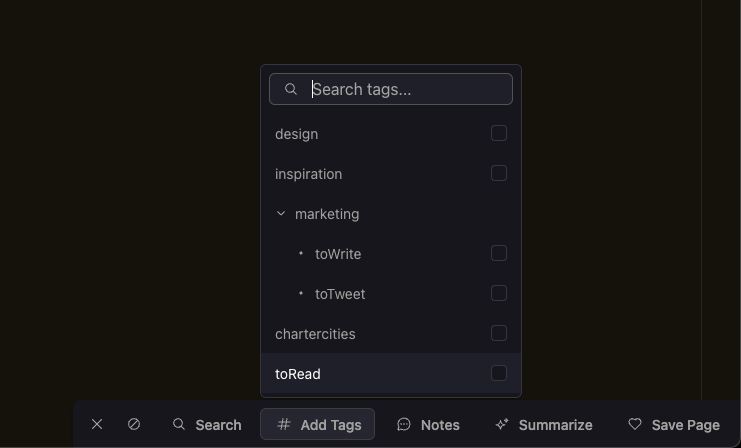 Tags can also be placed into multiple folders by pressing shift+drag/drop. This was not possible in the old “Spaces & Tags” data hierarchy of the previous Memex. We listened!