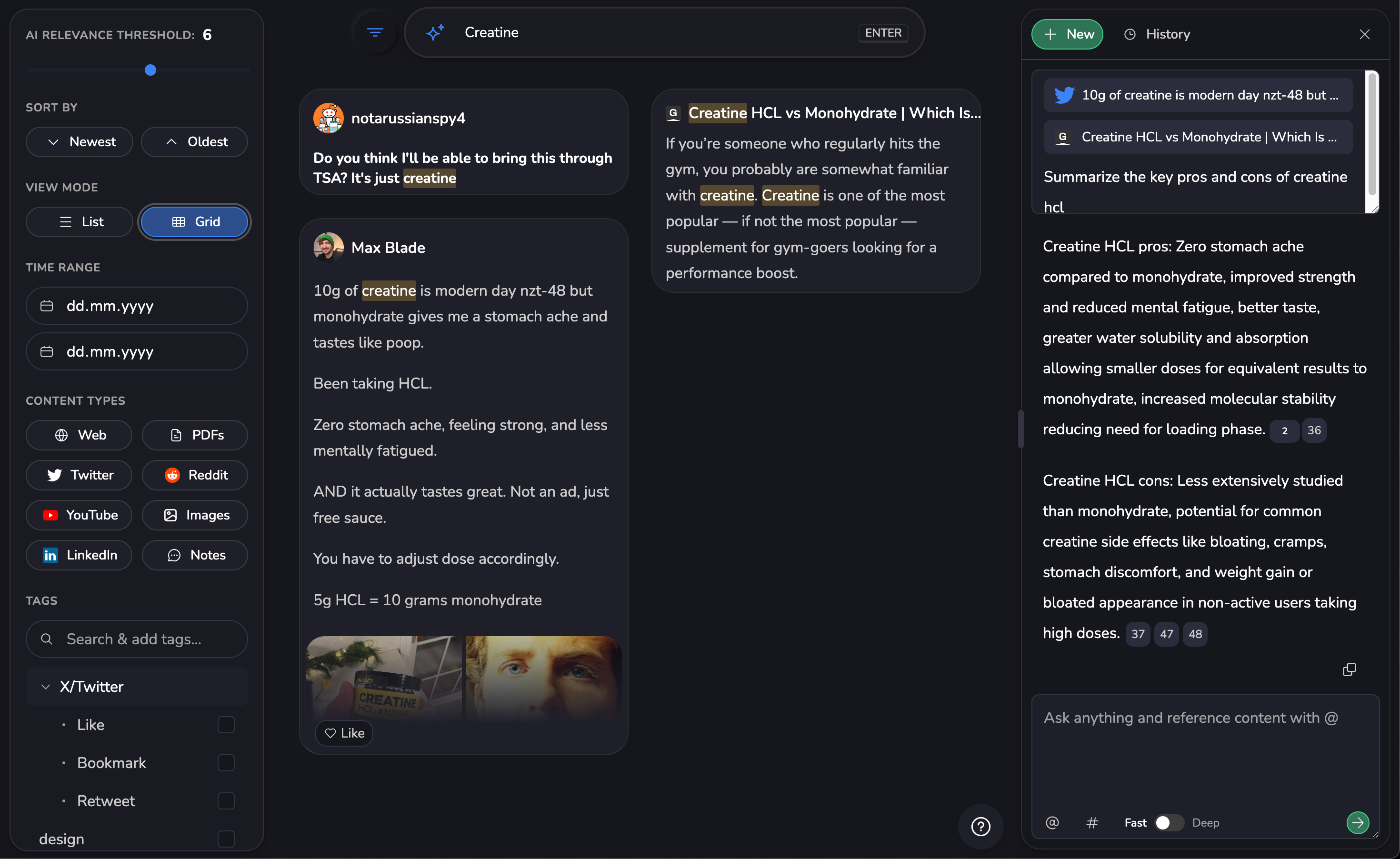 Make all saved content available via Integrations, APIs and MCP servers to integrate it into your AI driven writing and research workflows in other apps! Think: “Write me a draft for a tweet about the honey diet and use what I saved in Memex as a foundation”